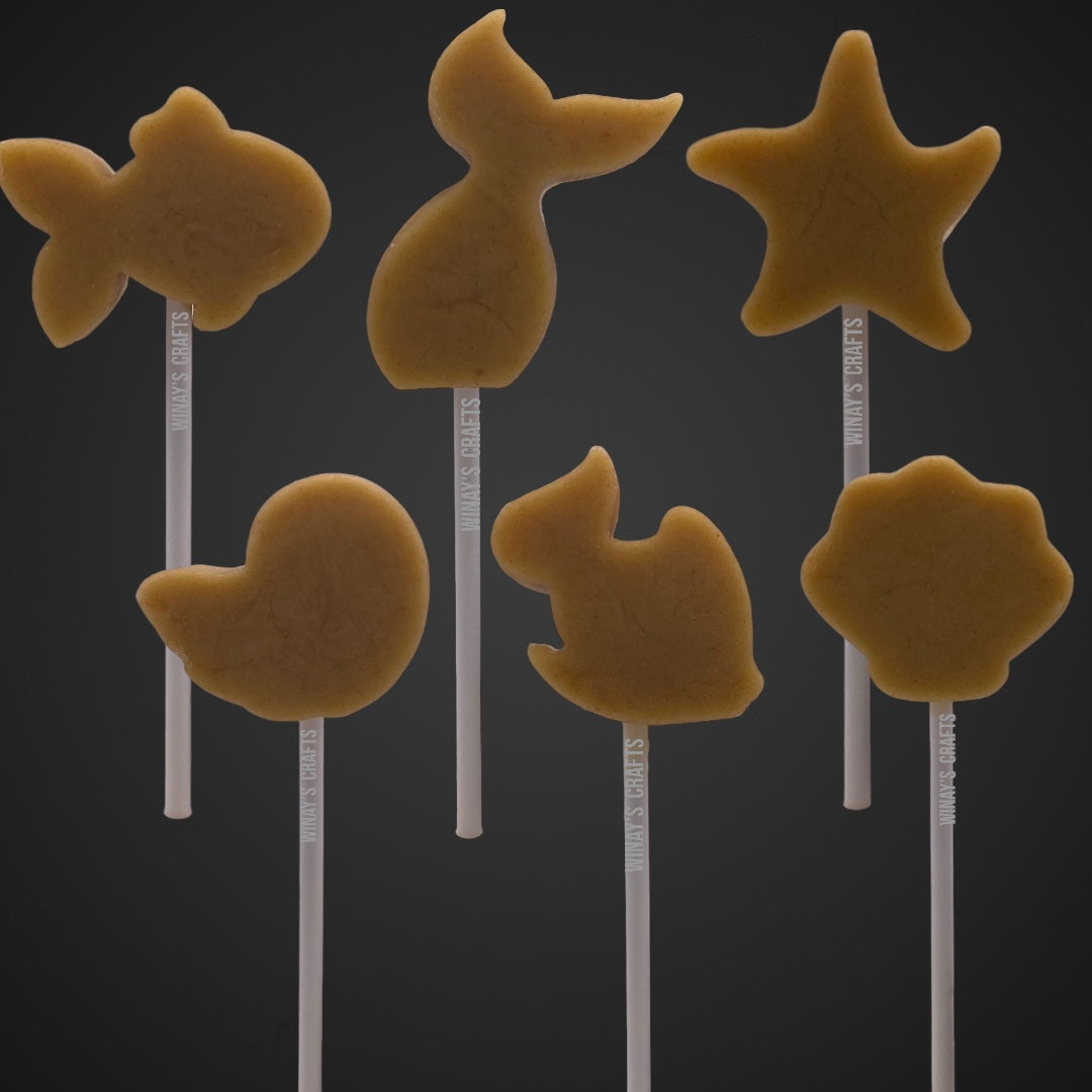 This is Winay’s Crafts cake pop plunger that shapes your cake dough into Mermaid Tail, Seashell, Sea Witch Seashell, Starfish, Fish, Fish 2.0 perfectly.